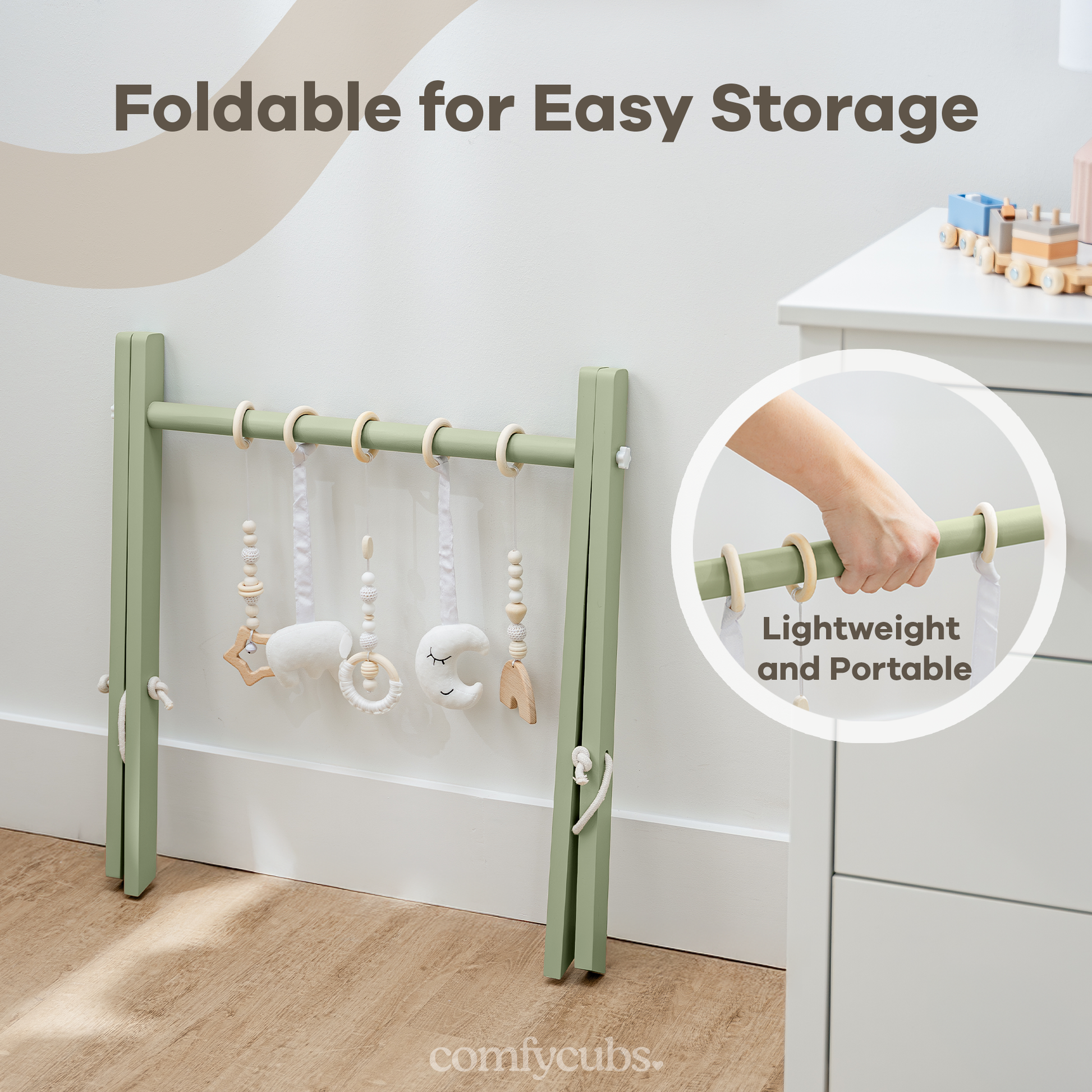 Stimulating Sensory Play: Comes with 5 adorable sensory hanging toys in white and wood colors, designed to stimulate your baby's senses, encourage learning, and support healthy visual and motor development.
