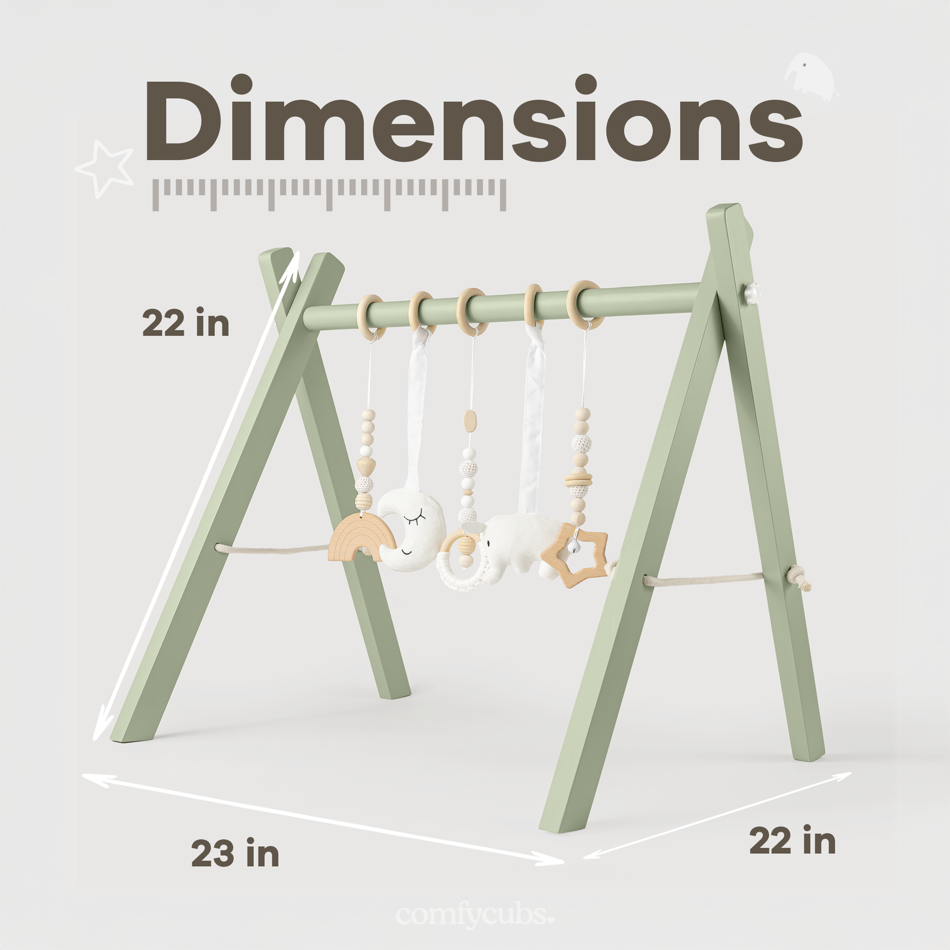Perfect Dimensions for Playtime: Tailored for spacious play yet compact enough for easy storage and portability, our play gym measures 22 X 22 X 23 inches. This offers the ideal balance of functionality and convenience, ensuring a safe and engaging play area that fits beautifully in any space.