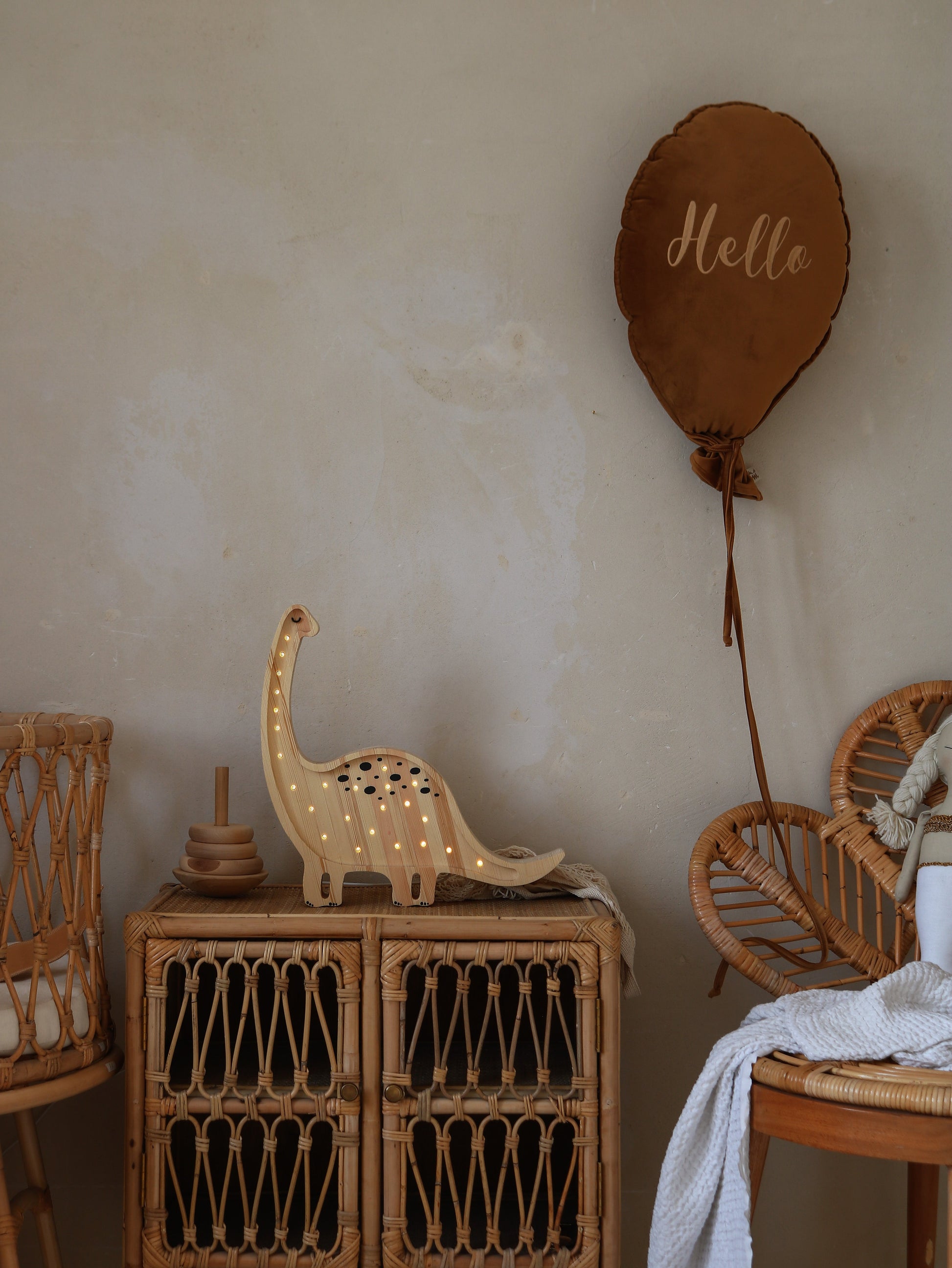 Playful Dinosaur Shape: With its lovable silhouette and soft curves, this dino adds a sense of fun and adventure to nurseries, bedrooms, and play areas.