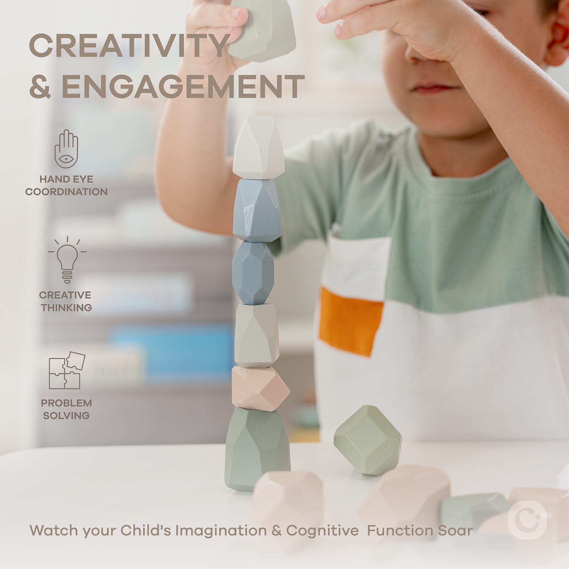 From building towers to designing abstract structures, these stacking blocks encourage imaginative thinking and problem-solving. Your child will explore shapes, balance, and patterns while expressing themselves through hands-on play.