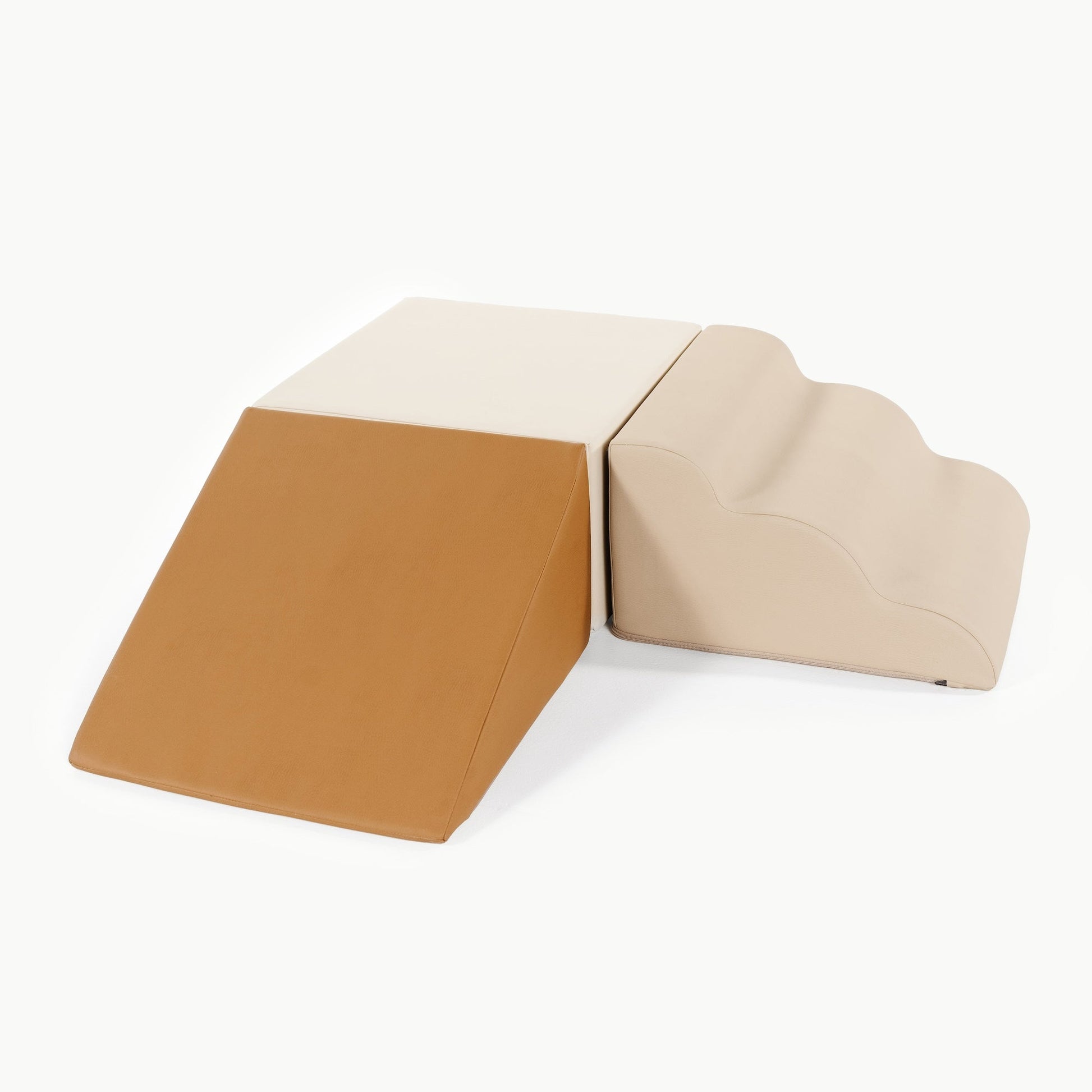 Made from premium, vegan leather with a soft-yet-sturdy foam interior, this set offers a cushioned surface perfect for little climbers and dreamers alike. Its modern, neutral design blends beautifully into your home — proof that playtime can be as beautiful as it is beneficial.