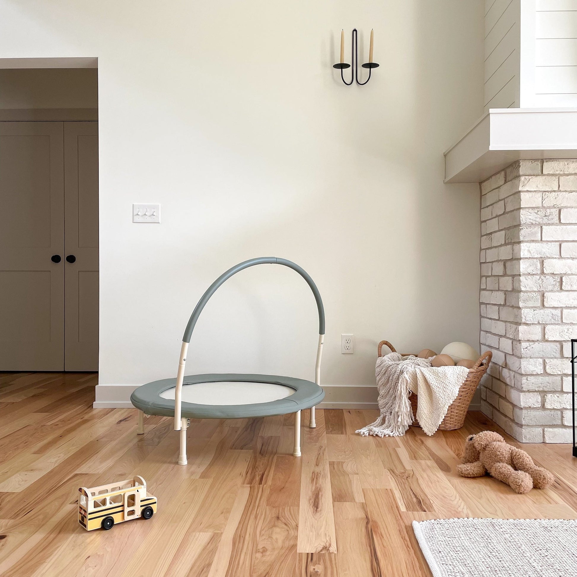 Timeless Design — Soft neutrals and natural materials make this trampoline feel right at home in any room, offering a playful touch without disrupting your space’s calm aesthetic.